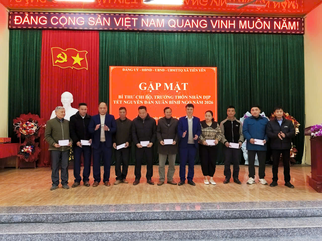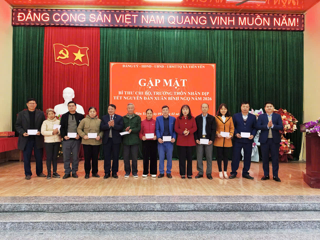 Nhân dịp này, lãnh đạo xã đã trao tặng quà và gửi lời chúc Tết ấm áp, nghĩa tình tới các hộ nghèo, hộ cận nghèo, động viên các gia đình đón Tết vui tươi, đầm ấm, tiếp tục nỗ lực vượt qua khó khăn, vươn lên trong cuộc sống. Trước đó các đồng chí Thường trực Đảng ủy, HĐND, UBND, UBMTTQ xã và các ngành đã đến dâng hương viếng Bia ghi tên các Anh hùng Liệt sĩ./
